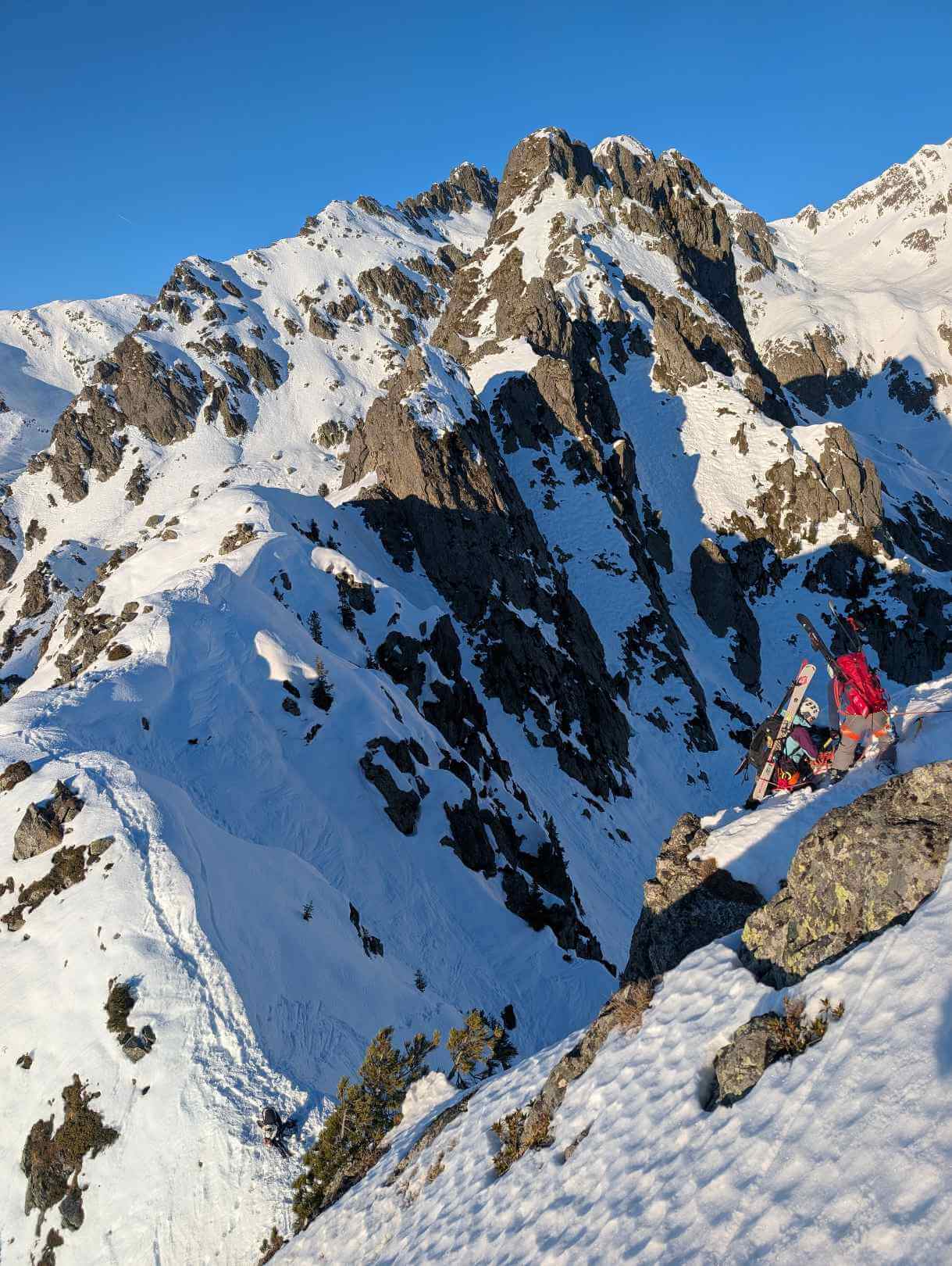 Cette sortie magnifique restera pour longtemps dans la mémoire des 9 ascensionnistes. Après une montée laborieuse dans la neige molle du couloir Sud et le panorama extraordinaire de l'arête tantôt neigeuse tantôt rocheuse, c'est surtout l'aventure du rappel qui animera les longues soirées d'hiver. La chute du bloc supportant l'anneau de rappel y est certainement pour beaucoup, mais aussi la courte mais longue redescente du dernier bastion du pinacle du Pin, de nuit et avec l'assistance des 2 sauveteurs du PGHM, jusqu'au point d'héliportage. Ou alors on retiendra l'héliportage lui-même pour les 6 malheureux qui n'avaient pas pu utiliser le rappel avant sa chute. Ou encore les sueurs froides après-coup des 3 qui ont utilisé le rappel sans qu'il leur tombe dessus. Ou tout simplement la descente à skis de nuit, du refuge d'Aigebelle au parking de la Betta. Ou la merveilleuse pizza qui a suivi. En résumé : plein de beaux souvenirs pleins d'émotions d'une sortie à la fin atypique.