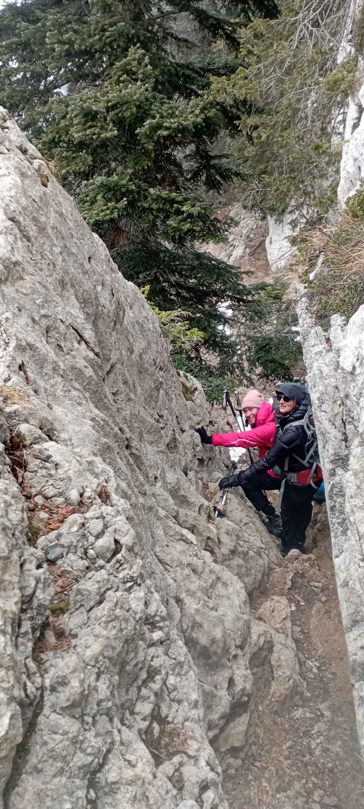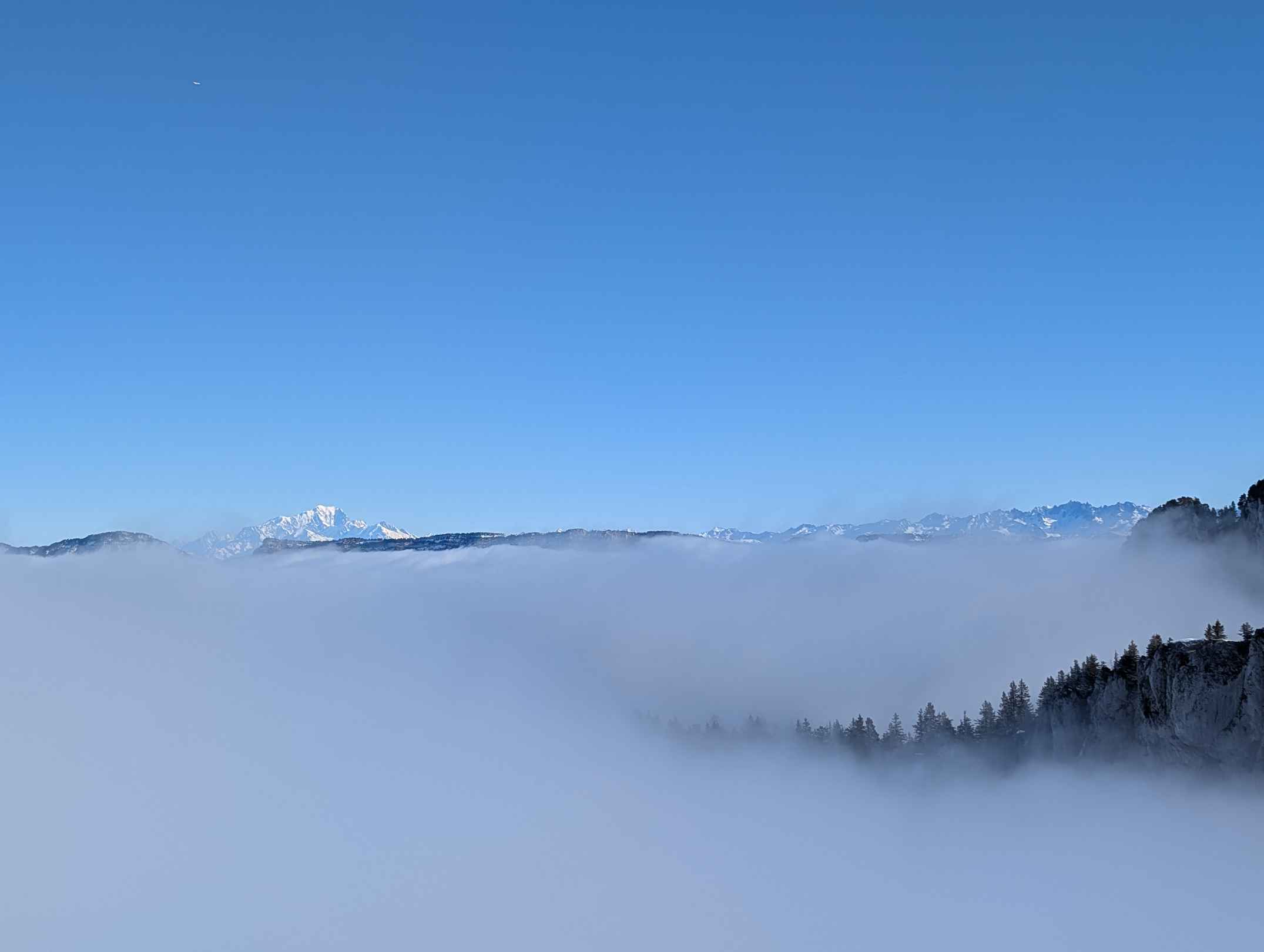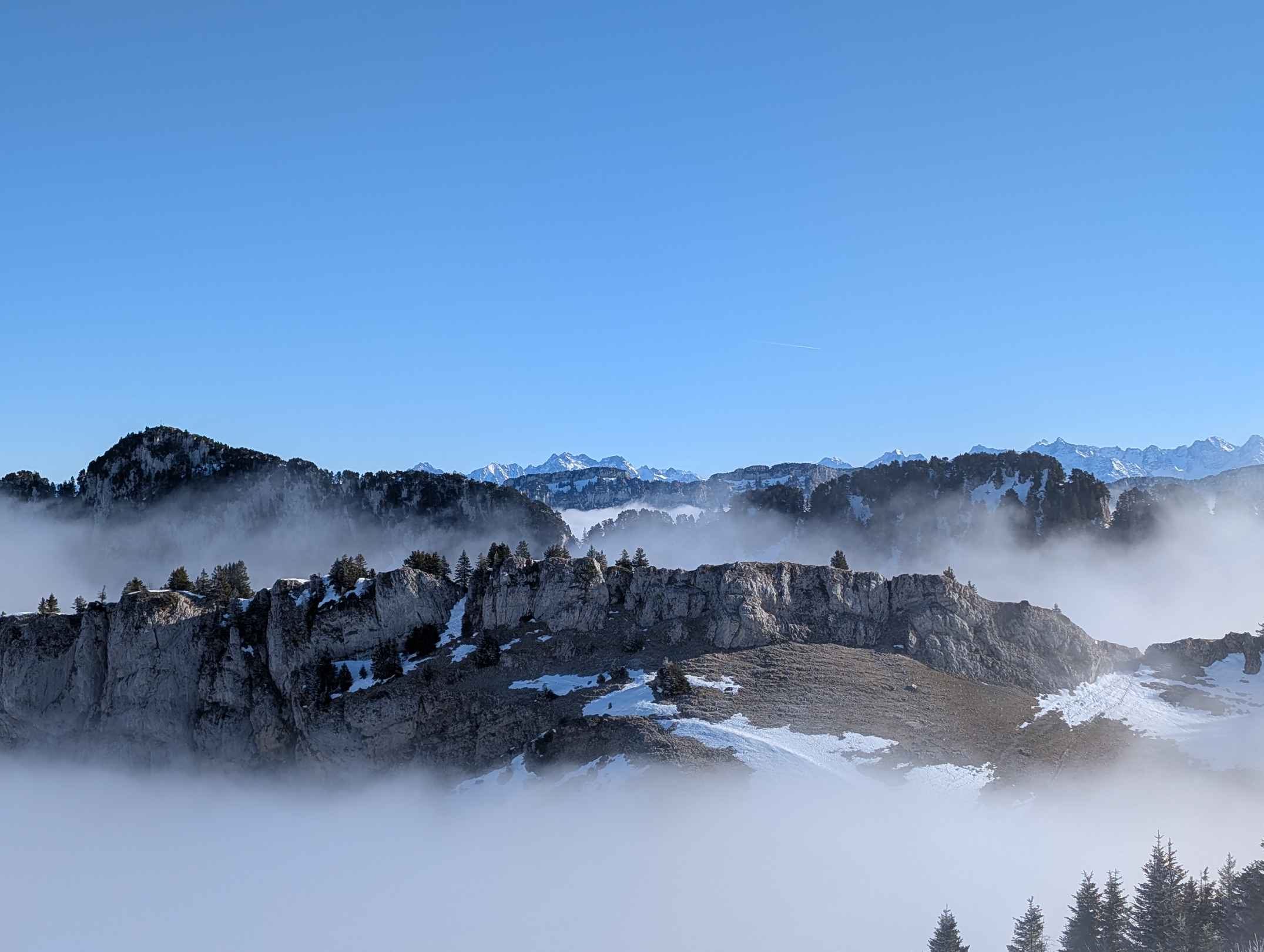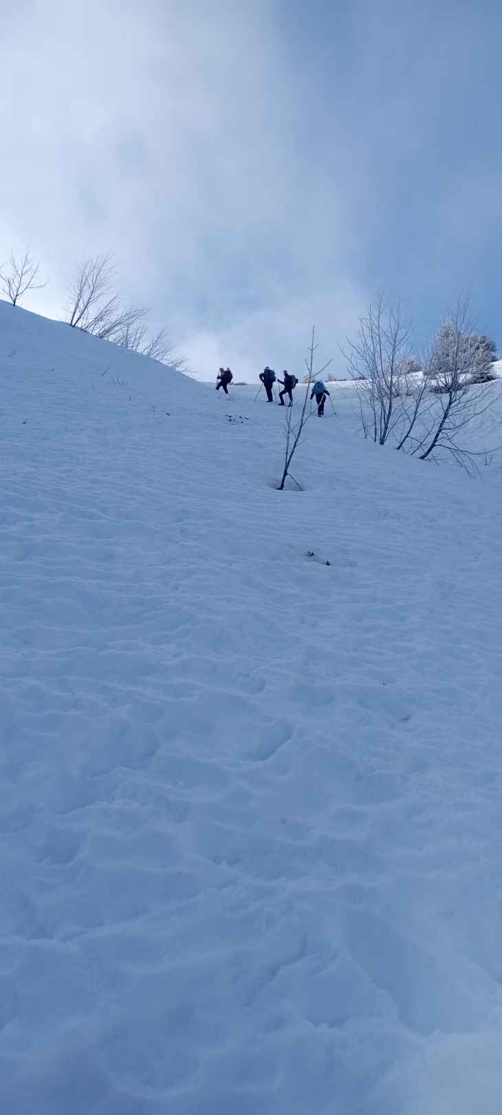 Belle sortie raquette pour démarrer 2026 avec le sommet du Petit Som en boucle depuis le Ruchère. Montée par le versant nord dans une neige bien dure nécessitant raquettes puis crampons (remarquez l'encadrement au petit soin pour aider les participants !) et descente versant sud par le Pas du Loup (complétement sec) et le Col de la Ruchère. Très belle vue au sommet au dessus des nuages et une surprise avec un superbe cercle de brocken et sa gloire (on en profite pour faire un petit cours d'optique avant la pause déjeuner). Une alternance de paysage agréable mais on espère le retour de la neige fraîche rapidement pour continuer la saison. A bientôt pour les prochaines sorties avec le club !