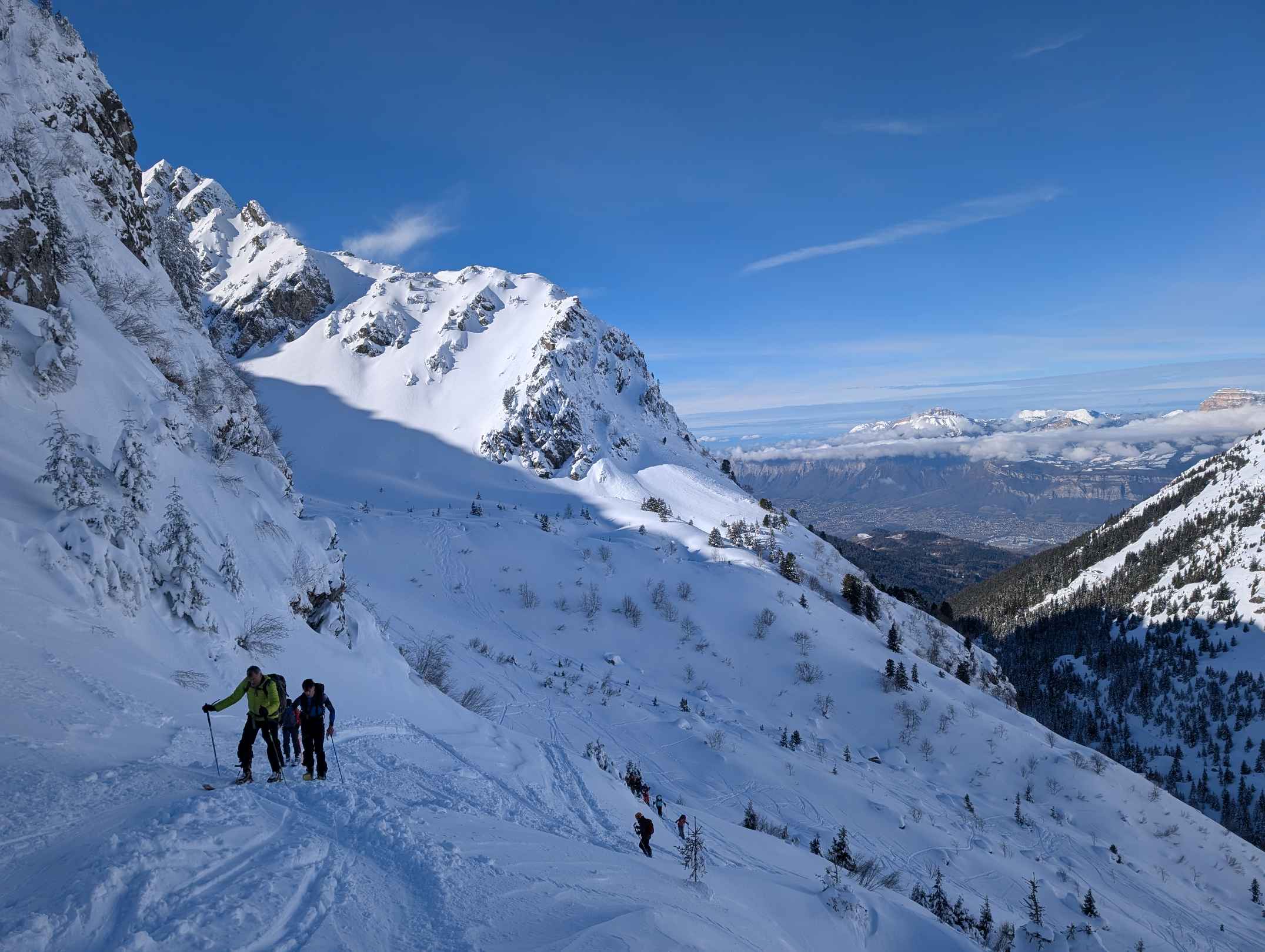 Une belle sortie ce dimanche au Pas de la Coche en niveau 1*. Un soleil bien plus généreux qu'attendu par les prévisions météo, une neige poudreuse en versant nord excellente à skier, quelques exercices de conversion pour parfaire la technique des participants dans des pentes plus raides et d'excellents cookies pour finir. Toutes les conditions étaient réunies pour passer une bonne journée en montagne!