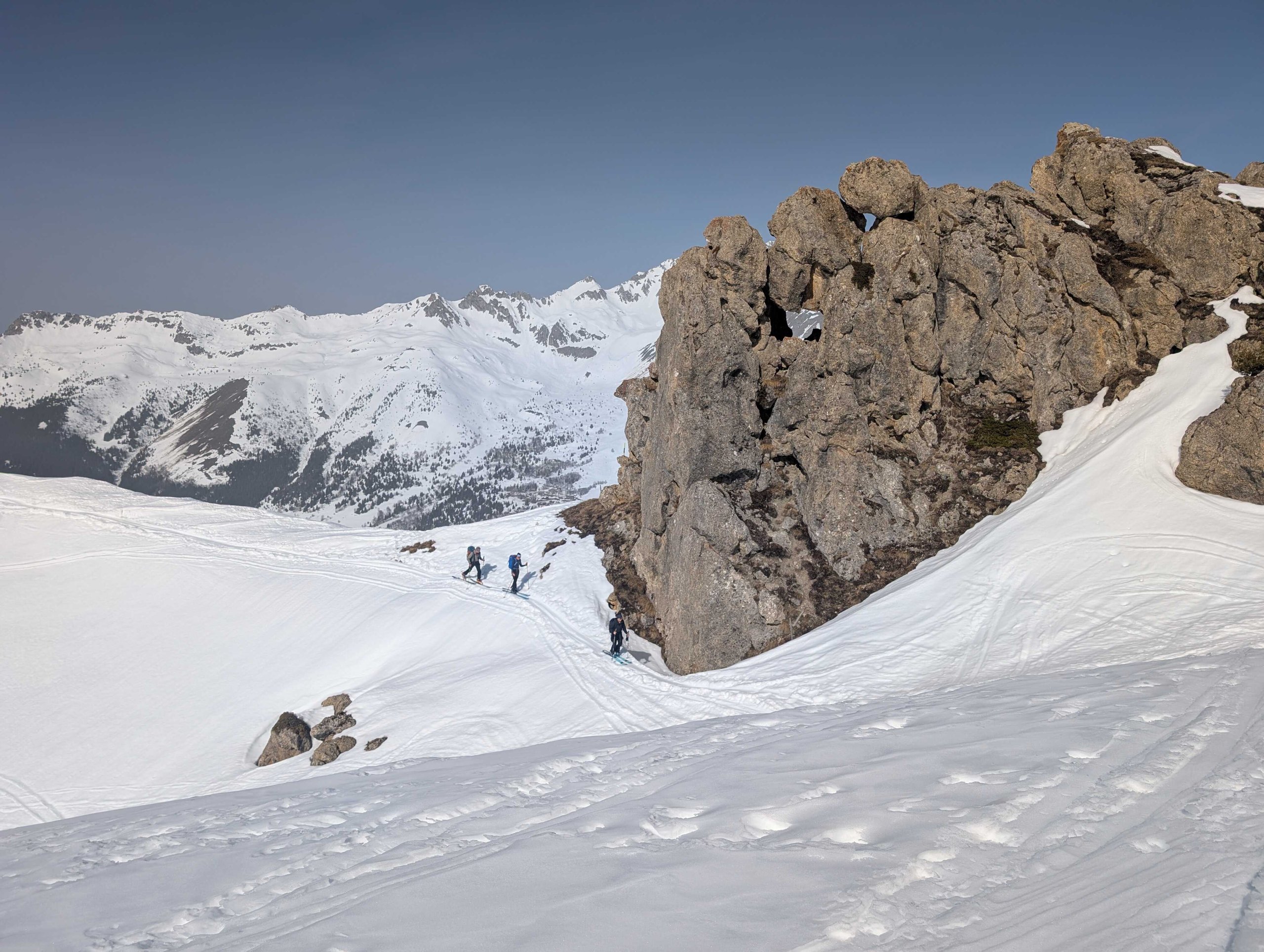 Superbe petite sortie printanière en versant sud de la Lauzière. Au soleil et au calme malgré la proximité de la station de Sain François. On en a profité pour faire une bonne prtatique de la recherche DVA multivitcimes, et un bon peu de pelletage.
