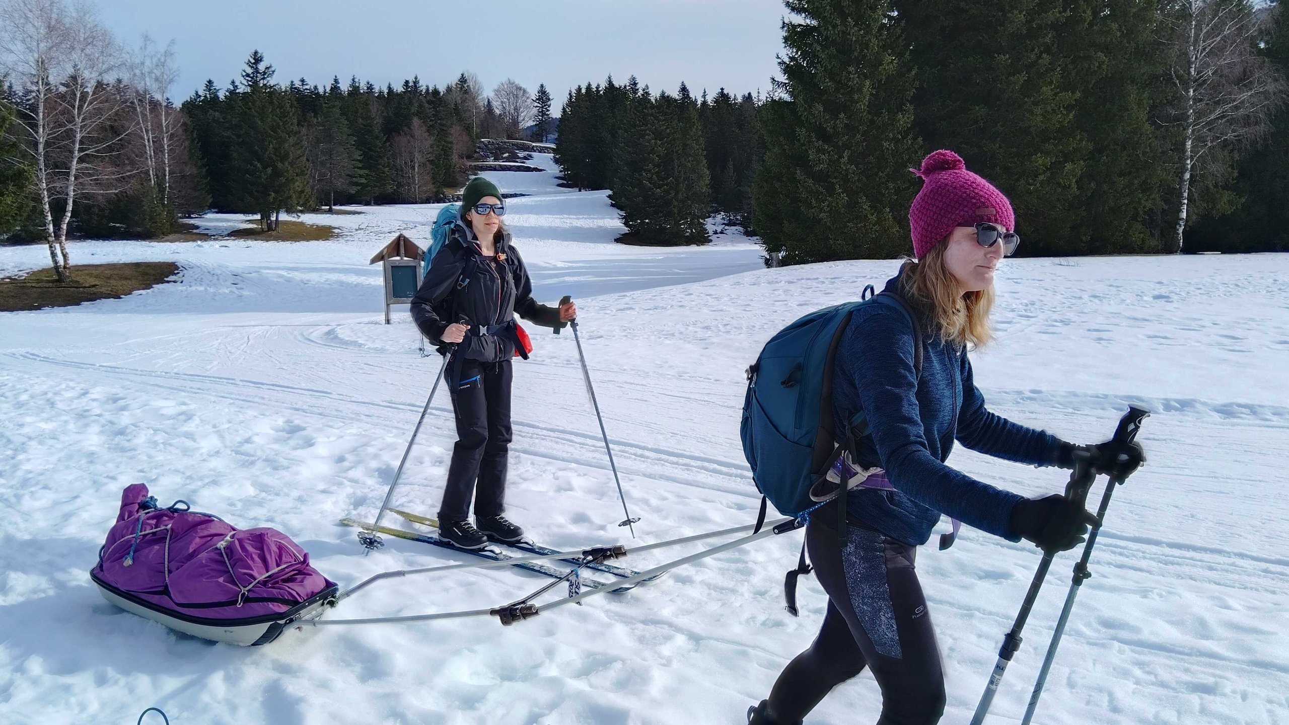 Le weekend dernier marquait le retour de la sortie de ski de randonnée nordique avec pulkas et bivouac hivernal. Un groupe de 12 aventuriers, pas frileux du tout, s'est rendu dans le Vercors pour deux jours. Après 35km de ski ponctués d'une soirée de bivouac animée et d'une météo alternant entre grand soleil et nuages, tout le monde était ravi de ce beau weekend ! Bravo à ceux qui découvraient l'activité de rando nordique sur un terrain pas toujours facile et aux habitués qui reviennent.